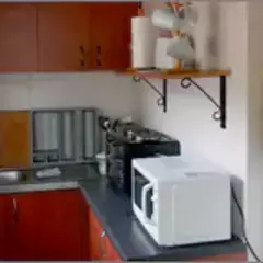 The Jabulani Unit (small double) has one small bedroom with double bed, en suite bathroom and a fully equipped kitchenette. Heaters and ceiling fans are installed.